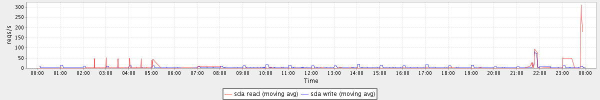 avg(sda read) = 18.60 avg(sda write) = 323.81