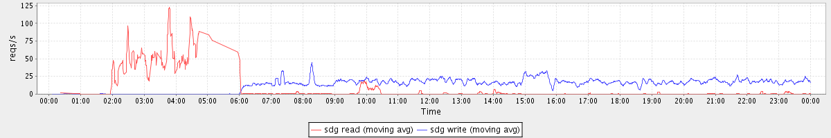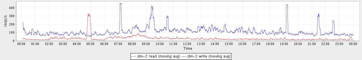 avg(dm-1 read) = 739.88 avg(dm-1 write) = 2195.57