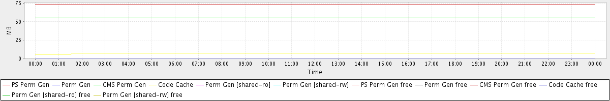 avg(PS Perm Gen) = 0.00 avg(Perm Gen) = 0.00 avg(CMS Perm Gen) = 55.24 avg(Code Cache) = 6.57 avg(Perm Gen [shared-ro]) = 0.00 avg(Perm Gen [shared-rw]) = 0.00 avg(PS Perm Gen free) = 0.00 avg(Perm Gen free) = 0.00 avg(CMS Perm Gen free) = 72.76 avg(Code Cache free) = 0.16 avg(Perm Gen [shared-ro] free) = 0.00 avg(Perm Gen [shared-rw] free) = 0.00