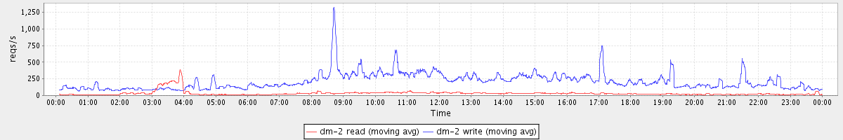 avg(dm-0 read) = 719.75 avg(dm-0 write) = 264.10