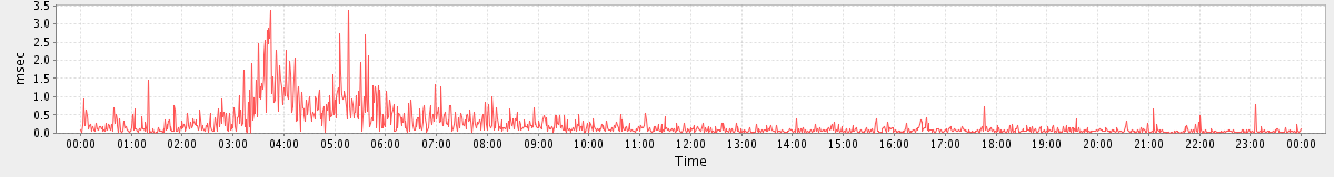 max(MsgActionRequest.move) = 2149.00 max(GetContactsRequest) = 474.00 max(MsgActionRequest.delete) = 1744.00 max(NoOpRequest) = 131.00 max(MsgActionRequest.update) = 301.00 max(AddMsgRequest) = 314.00 max(SetAppointmentRequest) = 159.00 max(GetFolderRequest) = 350.00 max(SyncRequest) = 366.00 max(GetAppointmentRequest) = 714.00