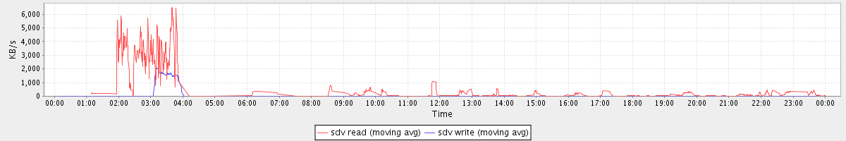 avg(sda read) = 1.28 avg(sda write) = 4.04
