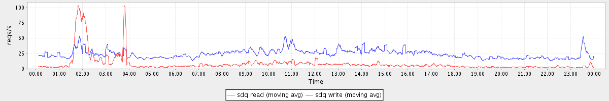 avg(sdq read) = 8.42 avg(sdq write) = 24.43