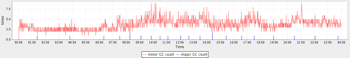 avg(minor GC count) = 3.68 avg(major GC count) = 0.02