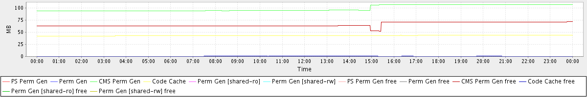 avg(PS Perm Gen) = 0.00 avg(Perm Gen) = 0.00 avg(CMS Perm Gen) = 99.12 avg(Code Cache) = 42.99 avg(Perm Gen [shared-ro]) = 0.00 avg(Perm Gen [shared-rw]) = 0.00 avg(PS Perm Gen free) = 0.00 avg(Perm Gen free) = 0.00 avg(CMS Perm Gen free) = 65.73 avg(Code Cache free) = 0.44 avg(Perm Gen [shared-ro] free) = 0.00 avg(Perm Gen [shared-rw] free) = 0.00
