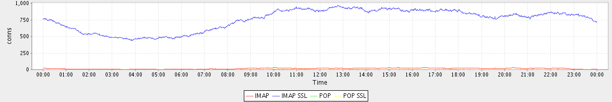 avg(IMAP) = 15.11 avg(IMAP SSL) = 754.73 avg(POP) = 0.00 avg(POP SSL) = 3.00
