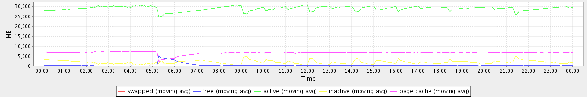 avg(swapped) = 0.25 avg(free) = 373.86 avg(active) = 29062.82 avg(inactive) = 2088.26 avg(page cache) = 6663.76