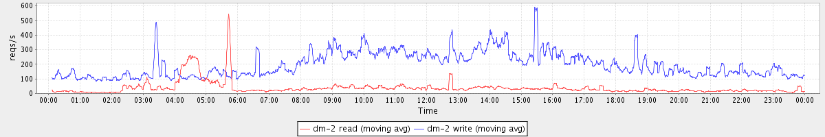 avg(dm-2 read) = 37.78 avg(dm-2 write) = 197.75