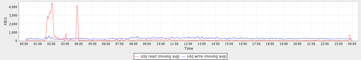 avg(sda read) = 1.05 avg(sda write) = 3.85