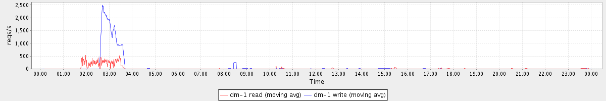 avg(dm-1 read) = 1130.21 avg(dm-1 write) = 286.44
