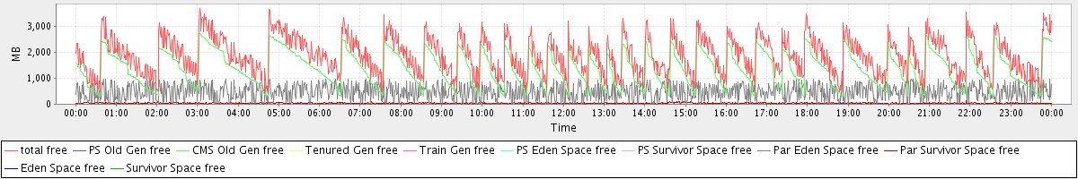 avg(total free) = 1864.47 avg(PS Old Gen free) = 0.00 avg(CMS Old Gen free) = 1349.93 avg(Tenured Gen free) = 0.00 avg(Train Gen free) = 0.00 avg(PS Eden Space free) = 0.00 avg(PS Survivor Space free) = 0.00 avg(Par Eden Space free) = 478.59 avg(Par Survivor Space free) = 35.95 avg(Eden Space free) = 0.00 avg(Survivor Space free) = 0.00