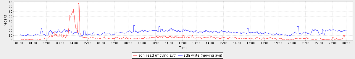 avg(sda read) = 0.93 avg(sda write) = 3.80