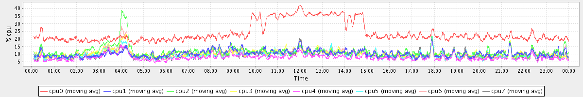 avg(cpu0) = 1.01 avg(cpu1) = 0.27 avg(cpu2) = 0.34 avg(cpu3) = 0.20 avg(cpu4) = 0.15 avg(cpu5) = 0.14 avg(cpu6) = 0.25 avg(cpu7) = 0.14