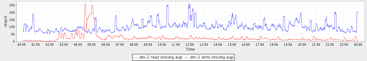 avg(dm-0 read) = 3052.40 avg(dm-0 write) = 409.79