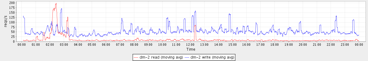 avg(sda2 read) = 0.09 avg(sda2 write) = 4.78