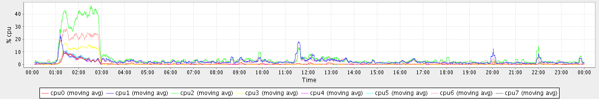 avg(cpu0) = 1.19 avg(cpu1) = 0.99 avg(cpu2) = 1.15 avg(cpu3) = 0.91 avg(cpu4) = 0.63 avg(cpu5) = 0.69 avg(cpu6) = 0.74 avg(cpu7) = 0.60