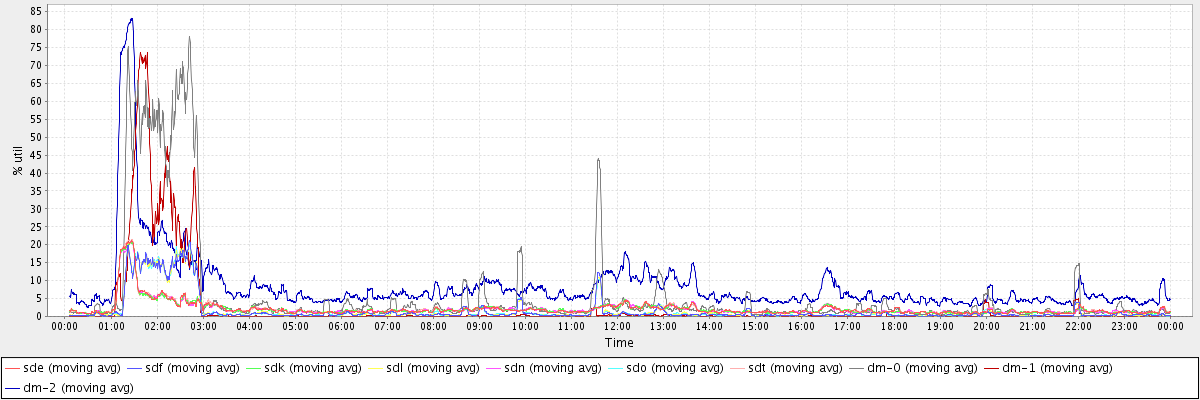 avg(sde) = 2.12 avg(sdf) = 1.60 avg(sdk) = 2.10 avg(sdl) = 1.61 avg(sdn) = 2.10 avg(sdo) = 1.60 avg(sdt) = 2.14 avg(dm-0) = 6.08 avg(dm-1) = 2.68 avg(dm-2) = 8.37