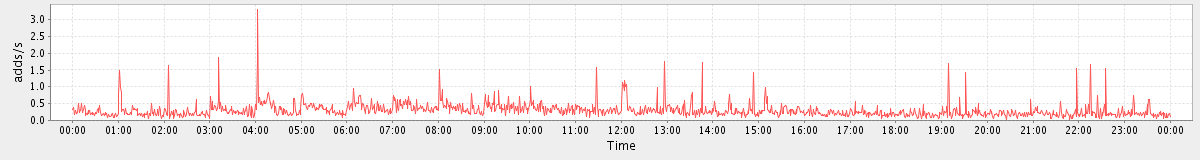 max(SearchConvRequest) = 37.00 max(SearchRequest) = 40.00 max(GetFolderRequest) = 402.00 max(GetContactsRequest) = 69.00 max(MsgActionRequest.delete) = 156.00 max(SyncRequest) = 94.00 max(ConvActionRequest.trash) = 32.00 max(MsgActionRequest.update) = 32.00 max(GetAppointmentRequest) = 555.00 max(GetDomainInfoRequest) = 291.00