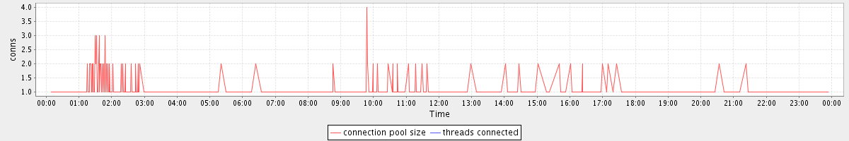 avg(connection pool size) = 0.27 avg(threads connected) = 0.00
