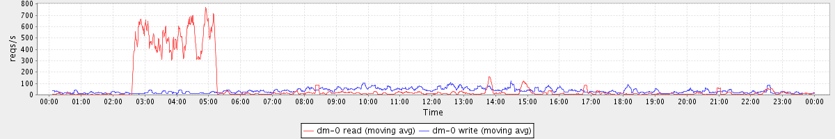 avg(dm-1 read) = 759.43 avg(dm-1 write) = 271.19