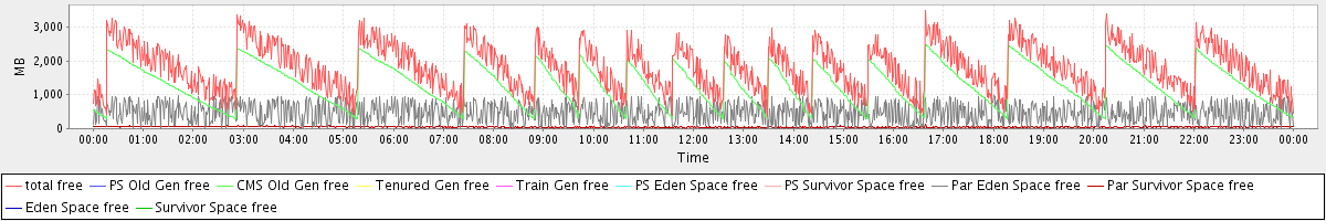 avg(total free) = 1814.50 avg(PS Old Gen free) = 0.00 avg(CMS Old Gen free) = 1284.91 avg(Tenured Gen free) = 0.00 avg(Train Gen free) = 0.00 avg(PS Eden Space free) = 0.00 avg(PS Survivor Space free) = 0.00 avg(Par Eden Space free) = 479.68 avg(Par Survivor Space free) = 49.92 avg(Eden Space free) = 0.00 avg(Survivor Space free) = 0.00