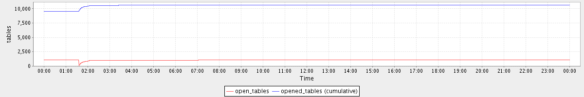 avg(open_tables) = 1062.79 avg(opened_tables (cumulative)) = 10537.87