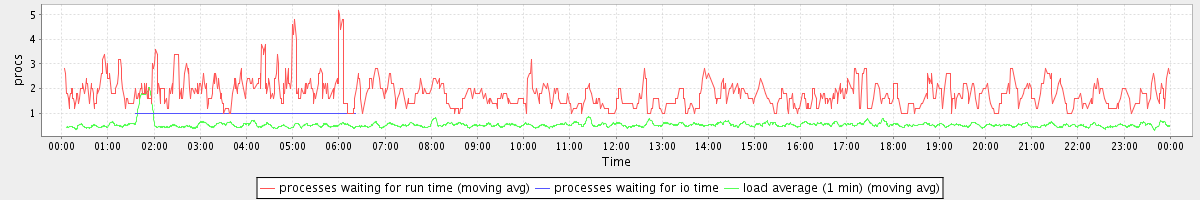 avg(processes waiting for run time) = 0.68 avg(processes waiting for io time) = 0.01 avg(load average (1 min)) = 0.53