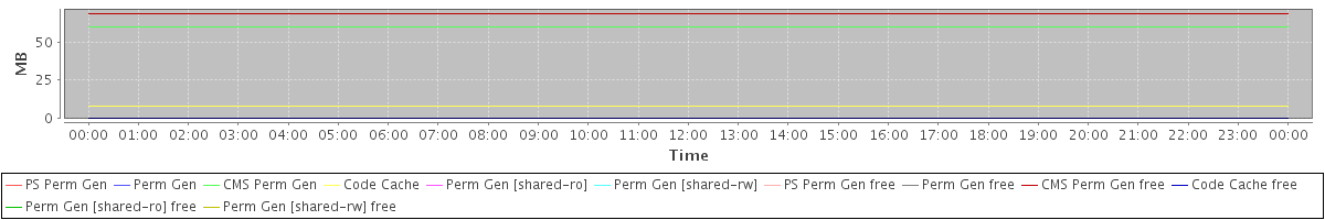 avg(PS Perm Gen) = 0.00 avg(Perm Gen) = 0.00 avg(CMS Perm Gen) = 59.83 avg(Code Cache) = 8.11 avg(Perm Gen [shared-ro]) = 0.00 avg(Perm Gen [shared-rw]) = 0.00 avg(PS Perm Gen free) = 0.00 avg(Perm Gen free) = 0.00 avg(CMS Perm Gen free) = 68.17 avg(Code Cache free) = 0.16 avg(Perm Gen [shared-ro] free) = 0.00 avg(Perm Gen [shared-rw] free) = 0.00