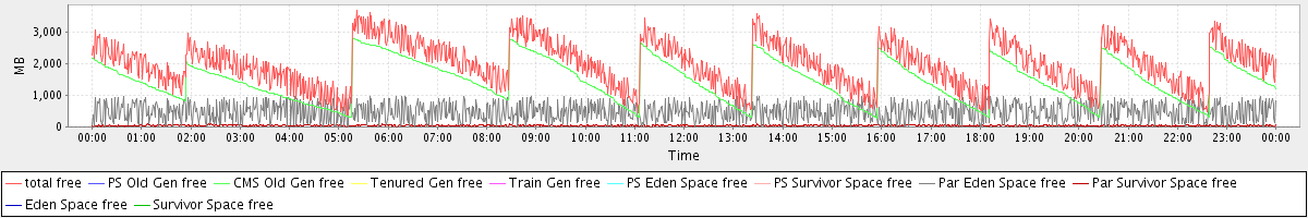 avg(total free) = 1992.59 avg(PS Old Gen free) = 0.00 avg(CMS Old Gen free) = 1476.08 avg(Tenured Gen free) = 0.00 avg(Train Gen free) = 0.00 avg(PS Eden Space free) = 0.00 avg(PS Survivor Space free) = 0.00 avg(Par Eden Space free) = 473.02 avg(Par Survivor Space free) = 43.50 avg(Eden Space free) = 0.00 avg(Survivor Space free) = 0.00