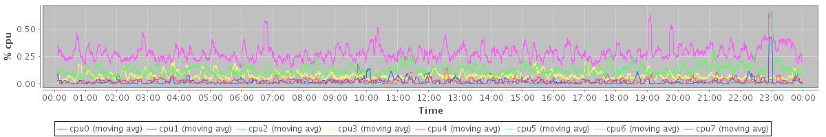 avg(cpu0) = 0.52 avg(cpu1) = 0.32 avg(cpu2) = 0.24 avg(cpu3) = 0.23 avg(cpu4) = 0.27 avg(cpu5) = 0.19 avg(cpu6) = 0.15 avg(cpu7) = 0.14