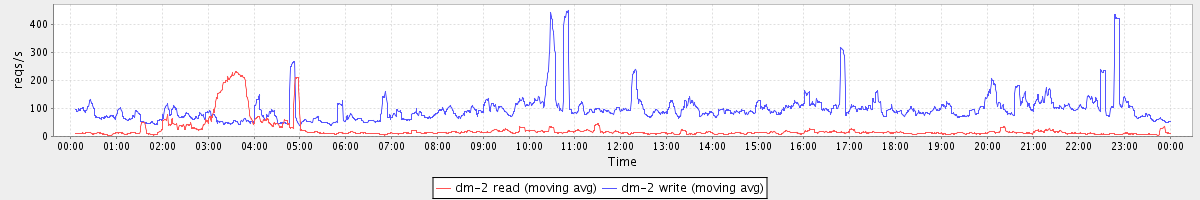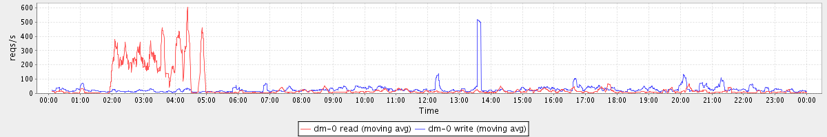 avg(dm-0 read) = 635.36 avg(dm-0 write) = 116.00