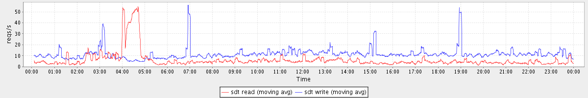avg(sda read) = 1.28 avg(sda write) = 4.00