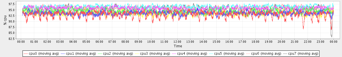 avg(cpu0) = 93.02 avg(cpu1) = 93.58 avg(cpu2) = 94.24 avg(cpu3) = 93.58 avg(cpu4) = 95.58 avg(cpu5) = 96.36 avg(cpu6) = 95.65 avg(cpu7) = 95.63
