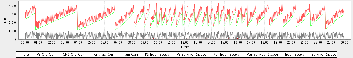 avg(total) = 2882.97 avg(PS Old Gen) = 0.00 avg(CMS Old Gen) = 2331.86 avg(Tenured Gen) = 0.00 avg(Train Gen) = 0.00 avg(PS Eden Space) = 0.00 avg(PS Survivor Space) = 0.00 avg(Par Eden Space) = 480.20 avg(Par Survivor Space) = 70.91 avg(Eden Space) = 0.00 avg(Survivor Space) = 0.00