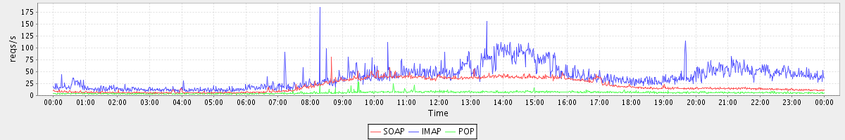 Host zm06.stanford.edu: Mailboxd: Request Rate by Client Protocol