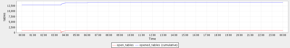 avg(open_tables) = 1086.55 avg(opened_tables (cumulative)) = 13821.88