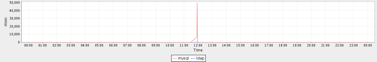 avg(mysql) = 44.74 avg(ldap) = 4.45