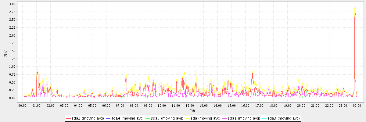 avg(sda2) = 0.18 avg(sda4) = 0.00 avg(sda5) = 0.01 avg(sda) = 0.28 avg(sda1) = 0.12 avg(sda3) = 0.00