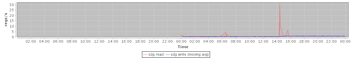 avg(sda read) = 0.17 avg(sda write) = 30.44