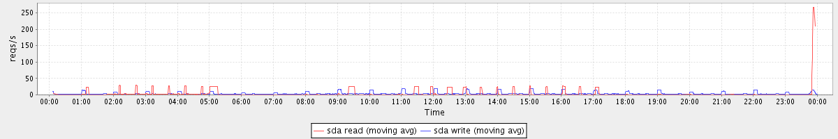 avg(sda read) = 22.27 avg(sda write) = 369.38