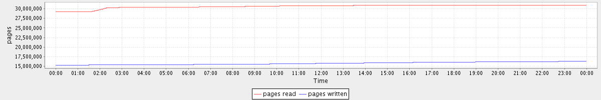 avg(pages read) = 30625277.90 avg(pages written) = 15747572.09