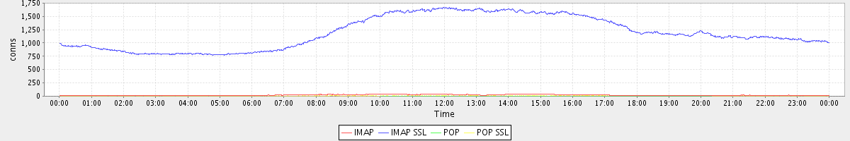 avg(IMAP) = 21.04 avg(IMAP SSL) = 1192.53 avg(POP) = 0.01 avg(POP SSL) = 3.92