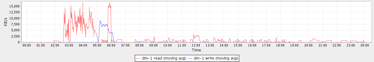 avg(dm-1 read) = 743.74 avg(dm-1 write) = 280.44