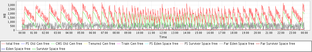 avg(total free) = 1790.77 avg(PS Old Gen free) = 0.00 avg(CMS Old Gen free) = 1205.23 avg(Tenured Gen free) = 0.00 avg(Train Gen free) = 0.00 avg(PS Eden Space free) = 0.00 avg(PS Survivor Space free) = 0.00 avg(Par Eden Space free) = 492.72 avg(Par Survivor Space free) = 92.81 avg(Eden Space free) = 0.00 avg(Survivor Space free) = 0.00