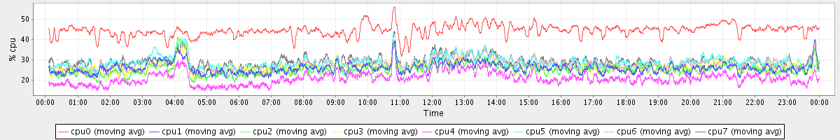 avg(cpu0) = 1.26 avg(cpu1) = 0.28 avg(cpu2) = 0.32 avg(cpu3) = 0.24 avg(cpu4) = 0.27 avg(cpu5) = 0.23 avg(cpu6) = 0.29 avg(cpu7) = 0.22