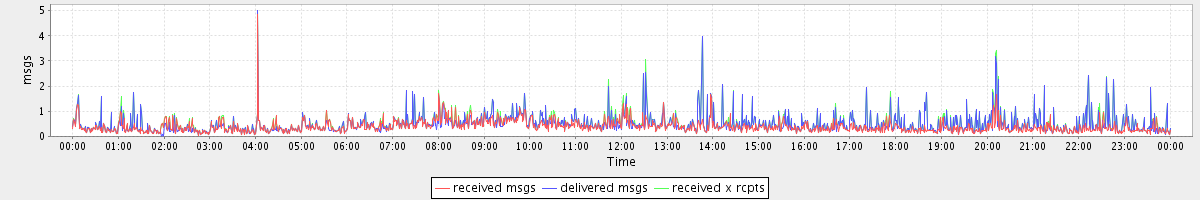 avg(received msgs) = 0.39 avg(delivered msgs) = 0.48 avg(received x rcpts) = 0.52