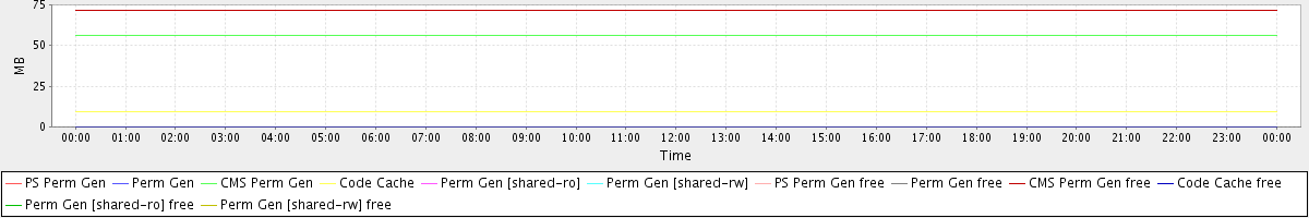 avg(PS Perm Gen) = 0.00 avg(Perm Gen) = 0.00 avg(CMS Perm Gen) = 56.29 avg(Code Cache) = 9.10 avg(Perm Gen [shared-ro]) = 0.00 avg(Perm Gen [shared-rw]) = 0.00 avg(PS Perm Gen free) = 0.00 avg(Perm Gen free) = 0.00 avg(CMS Perm Gen free) = 71.71 avg(Code Cache free) = 0.15 avg(Perm Gen [shared-ro] free) = 0.00 avg(Perm Gen [shared-rw] free) = 0.00