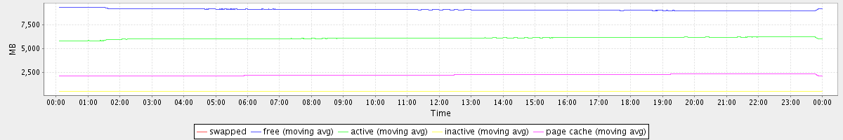 avg(swapped) = 0.00 avg(free) = 9106.12 avg(active) = 6110.71 avg(inactive) = 539.29 avg(page cache) = 2250.52