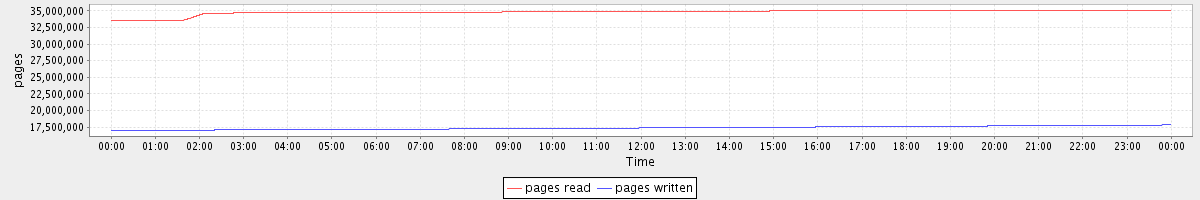 avg(pages read) = 34806932.69 avg(pages written) = 17371114.40