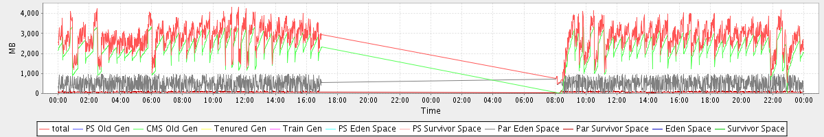 avg(total) = 2815.71 avg(PS Old Gen) = 0.00 avg(CMS Old Gen) = 2258.09 avg(Tenured Gen) = 0.00 avg(Train Gen) = 0.00 avg(PS Eden Space) = 0.00 avg(PS Survivor Space) = 0.00 avg(Par Eden Space) = 482.93 avg(Par Survivor Space) = 74.70 avg(Eden Space) = 0.00 avg(Survivor Space) = 0.00